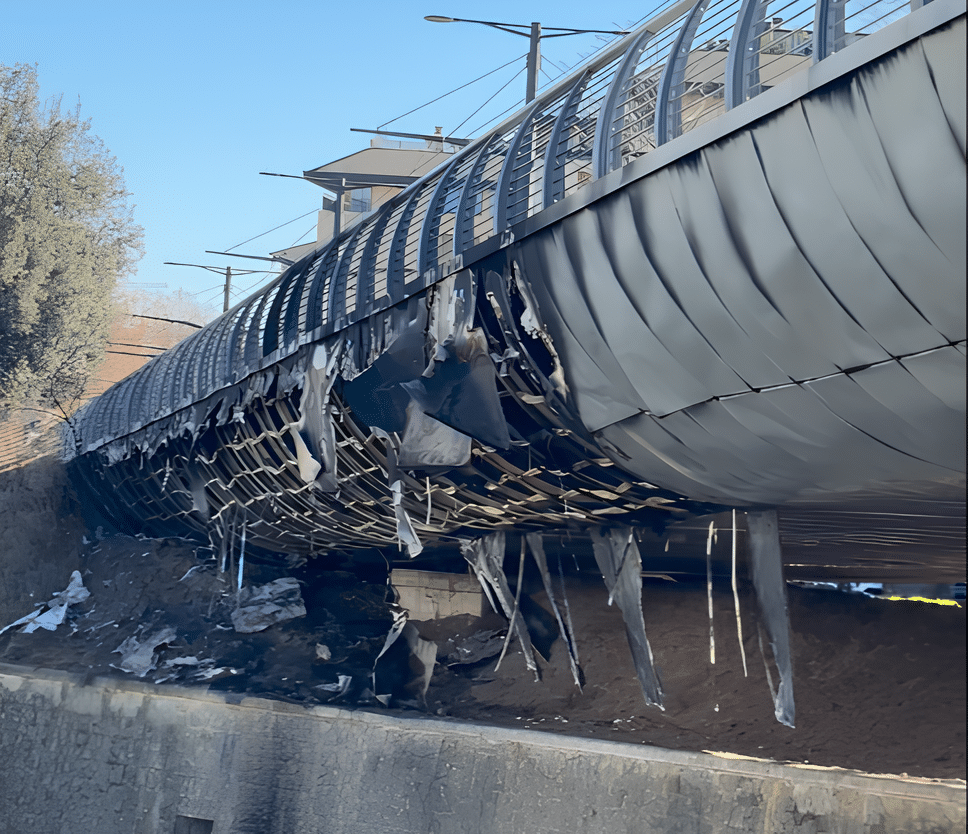 Il viadotto tramviario ha subito significativi danni a causa di un incendio verificatosi la notte del 30 dicembre 2025.